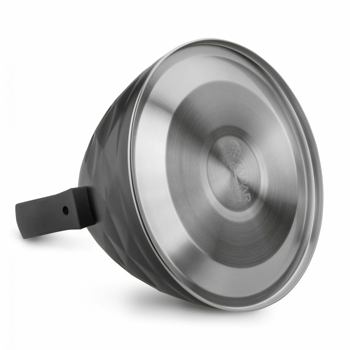 - oceľové veko, povrchová úprava: lesk, priemer: 9,5 cm, čierna plastová rukoväť, priskrutkovaná