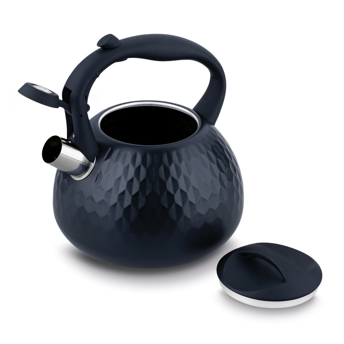Smaltovaný čajník s píšťalkou a plastovou rúčkou vo farbe dekoru čajníka. Praktický, trvácny a estetický kúsok do vašej kuchyne.
