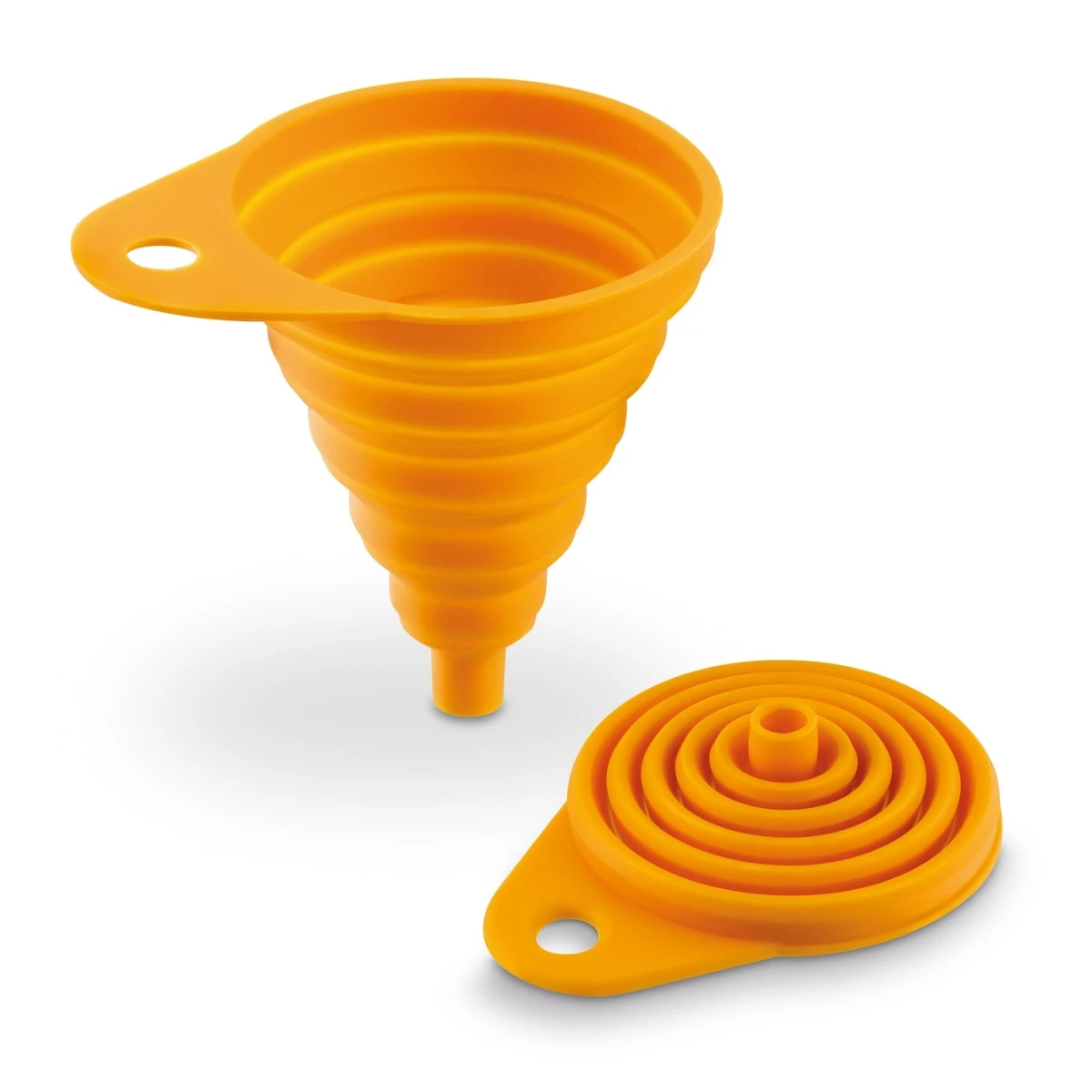 Tento flexibilný lievik je vyrobený z vysoko kvalitného oranžového silikónu . Bude vám dobre slúžiť vo vašej domácej kuchyni dlhé roky. Je to odolný produkt, ktorý je bezpečný pre kontakt s potravinami. Model je navrhnutý tak, aby sa dal ľahko zložiť a rozložiť . To uľahčuje dôkladné čistenie lievika po použití. Okrem toho umožňuje pohodlné uskladnenie v kuchynskej zásuvke.