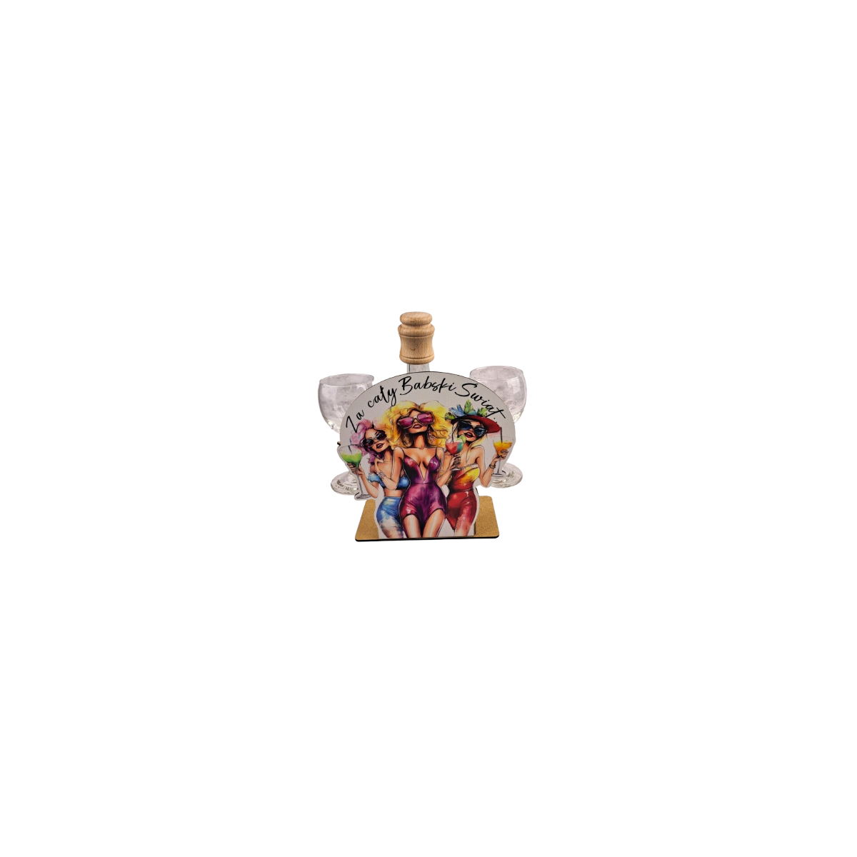 Milý darček šiestich štamperlíkov s vtipnými textami uložených v postieľke.