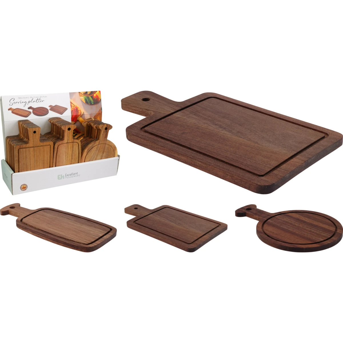 Drevené servírovacie dosky ideálne na servírovanie tapas a predjedál. Materiál: Akáciové drevo Rozmery: cca 19 cm