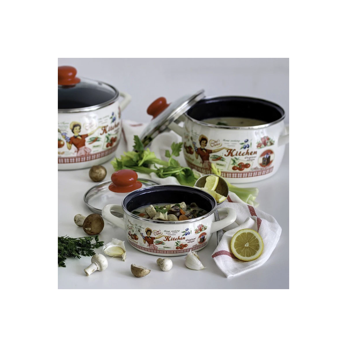 Kvalitný hrniec so smaltovaným povrchom s motívom retro gazdinky v americkom štýle sa stane praktickým aj dekoratívnym doplnkom vašej kuchyne. Má pekný oblý tvar, disponuje sklenenou pokrievkou s plastovým úchytom, čo oceníte pri manipulácii s horúcim hrncom. Hrniec je vhodný na všetky druhy sporákov(plynové, elektrické, indukčné, sklokeramické). Výhodou smaltovaného riadu je predovšetkým zdravotná nezávadnosť a dlhodobá životnosť.