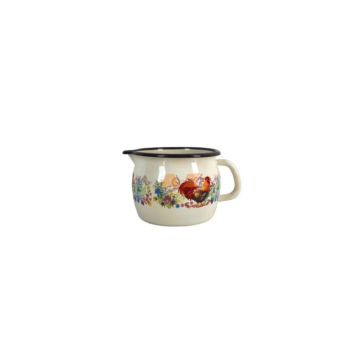 Popis rozmery: 13.5x19x10.5cm farba: krémová s motívom kohúta ROOSTER materiál: plech so smaltovanou povrchovou úpravou Objem: 1.30L. Vhodné na všetky typy sporákov vrátane indukčných, vhodné aj do umývačky riadu.
