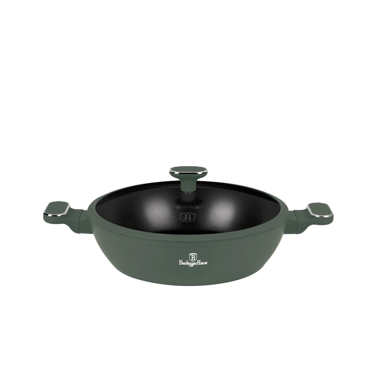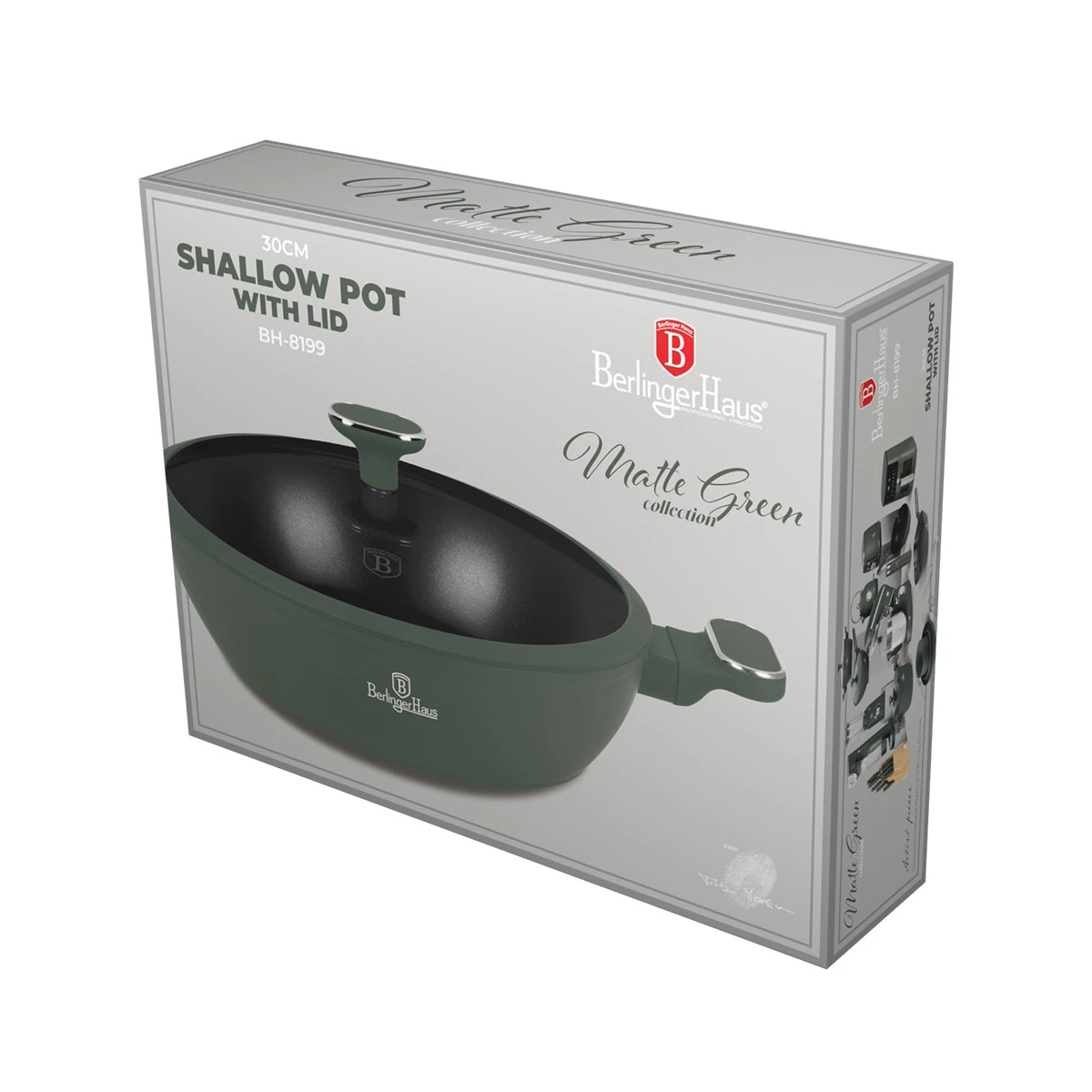 Plytký hrniec s pokrievkou Berlinger Haus BH8199 v matnej zelenej farbe je perfektnou voľbou pre všestranné varenie. Vďaka kovanej hliníkovej konštrukcii a nepriľnavému povrchu titanPro zaisťuje tento 30 cm hrniec rovnomerné rozloženie tepla, nepriľnavý povrch a jednoduché čistenie. Elegantná matná zelená povrchová úprava a pokrievka z tvrdeného skla ho robia štýlovým aj praktickým, ideálnym na jednoduchú prípravu omáčok, dusených pokrmov a zapekaných jedál.