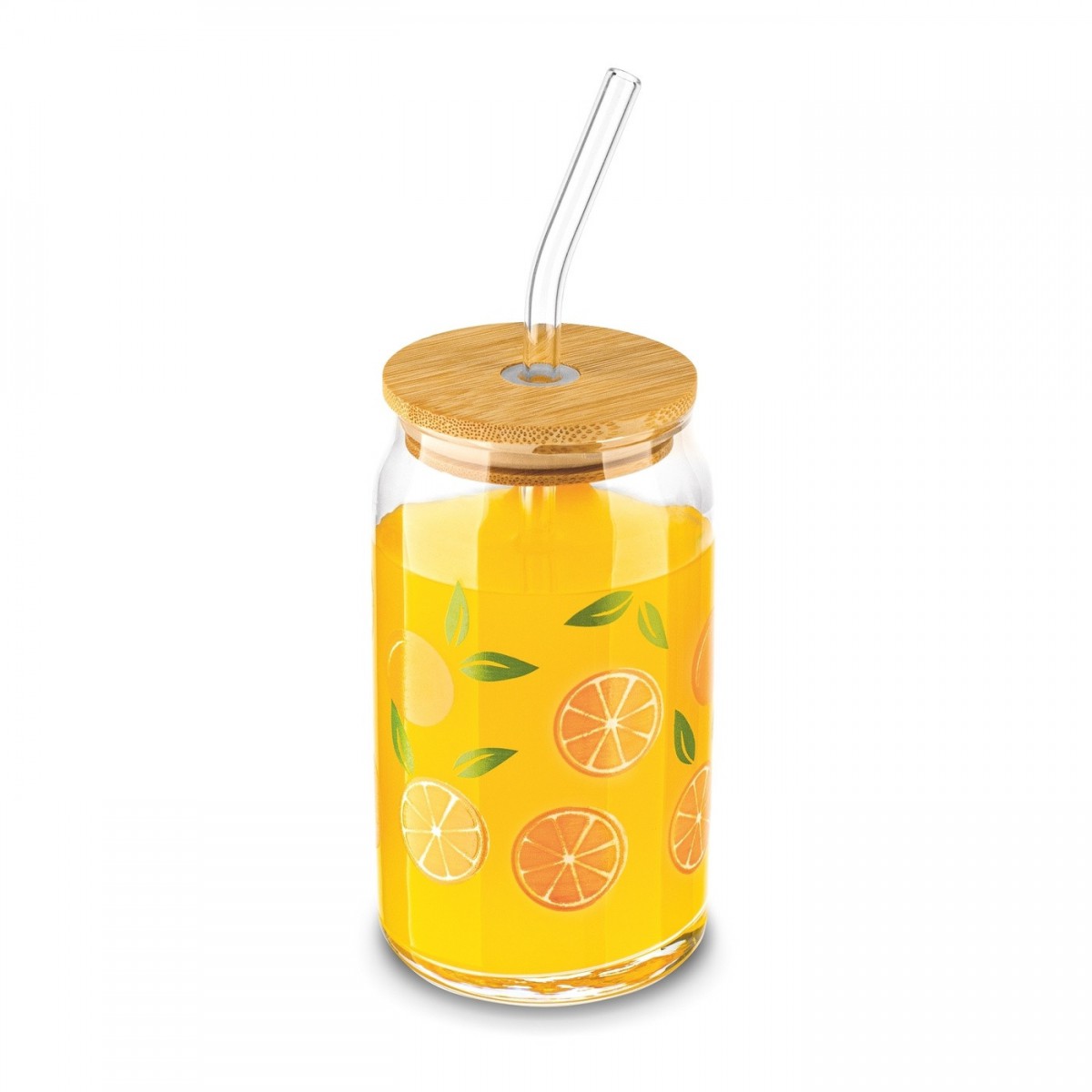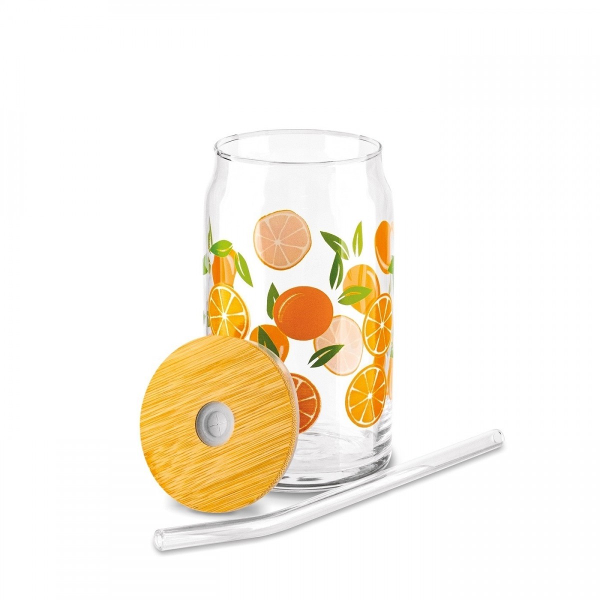 Pohár s borosilikátovou slamkou a dreveným viečkom
