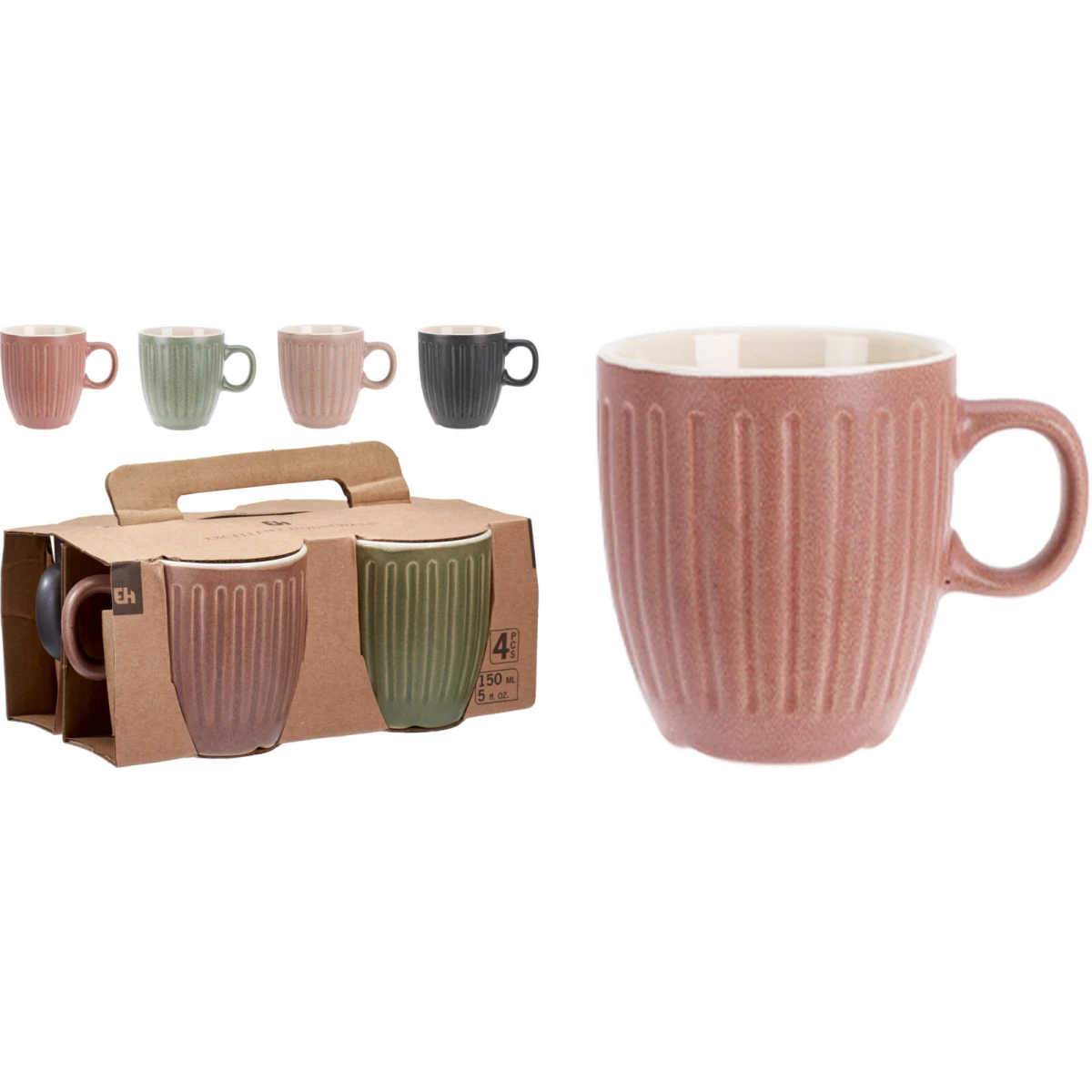 Táto sada štyroch keramických hrnčekov je ideálna na vychutnanie si kávy, čaju alebo iných obľúbených nápojov. Každý hrnček má jemný a elegantný vzor, ktorý dodá vášmu stolu moderný vzhľad.