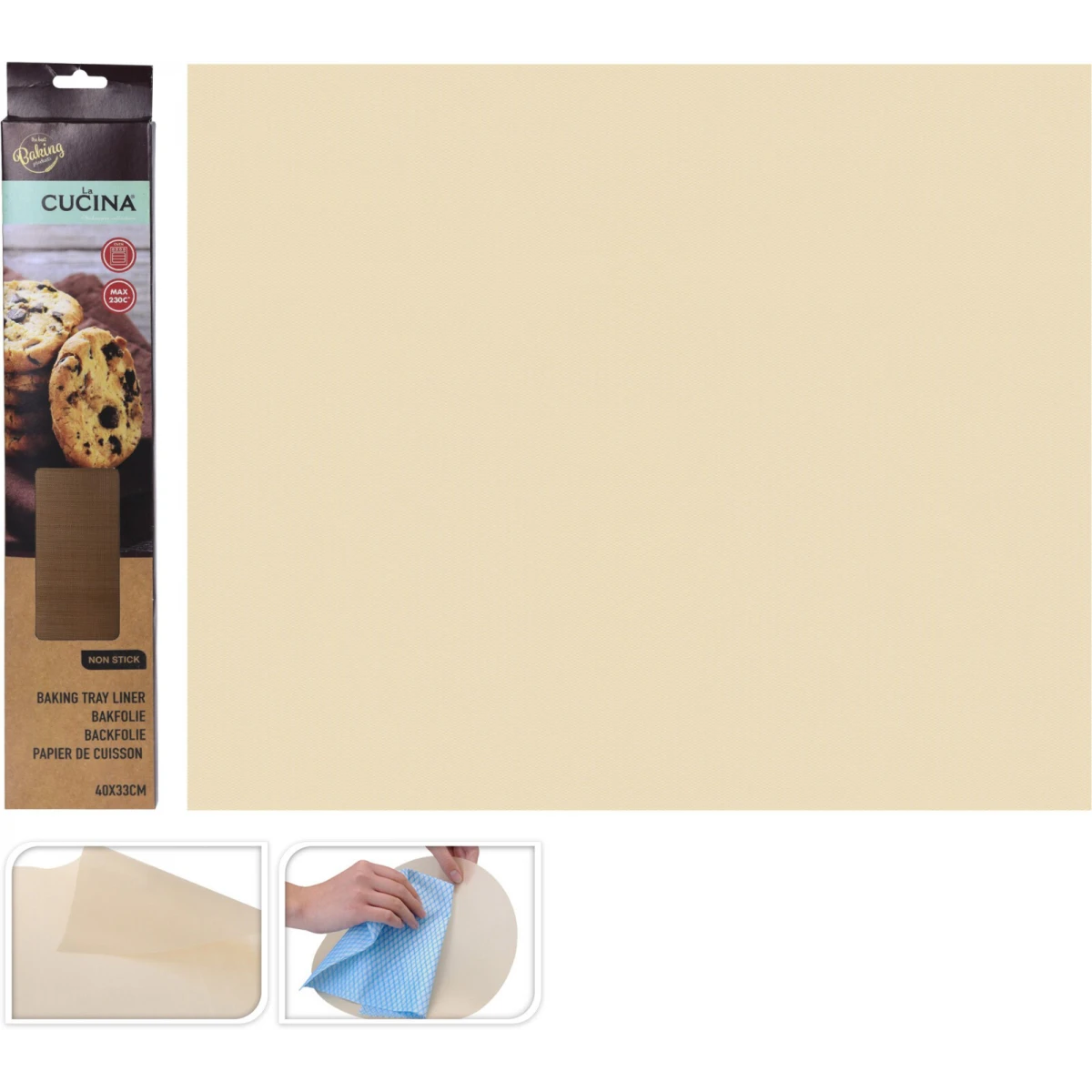 Papier na pečenie z nelepivého materiálu vhodný do teploty  230°C. Papier je možné 50 krát opakovateľne použiť.