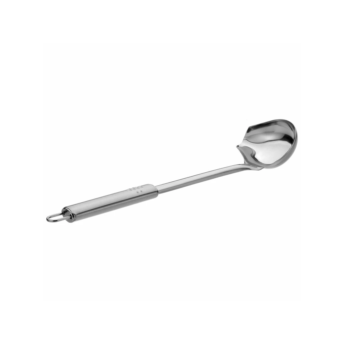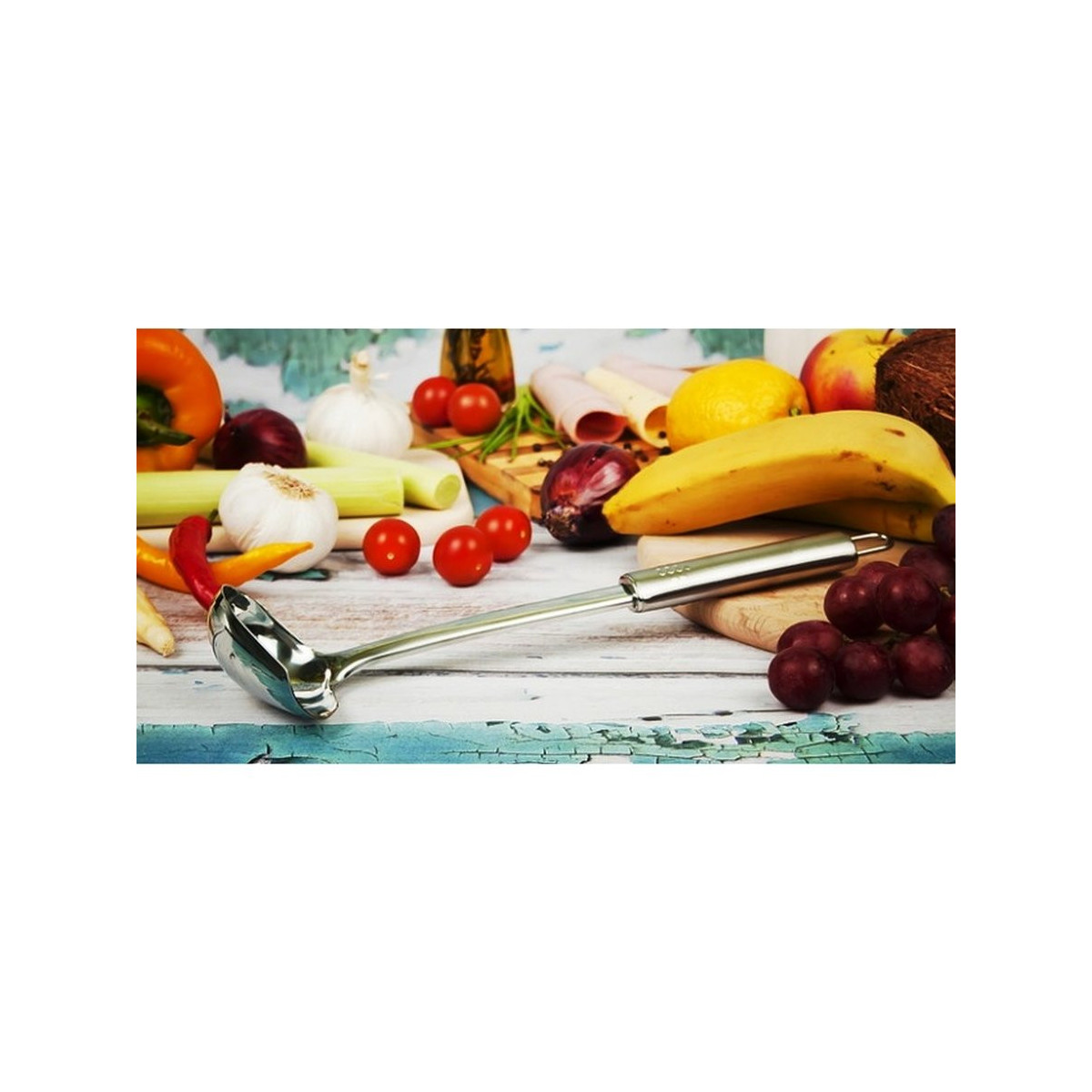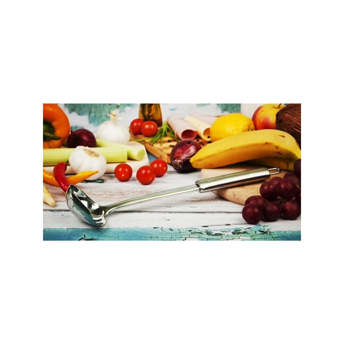 Všestranný a nevyhnutný riad, naberačka na omáčku, je vyrobená z vysoko kvalitnej nehrdzavejúcej ocele. Vďaka svojmu tvaru je ideálna na nalievanie omáčky do omáčnika alebo na polievanie jedál. Naberačka má špeciálnu rukoväť s úchytkami, ktoré zaisťujú bezpečné uchopenie a zabraňujú skĺznutiu
