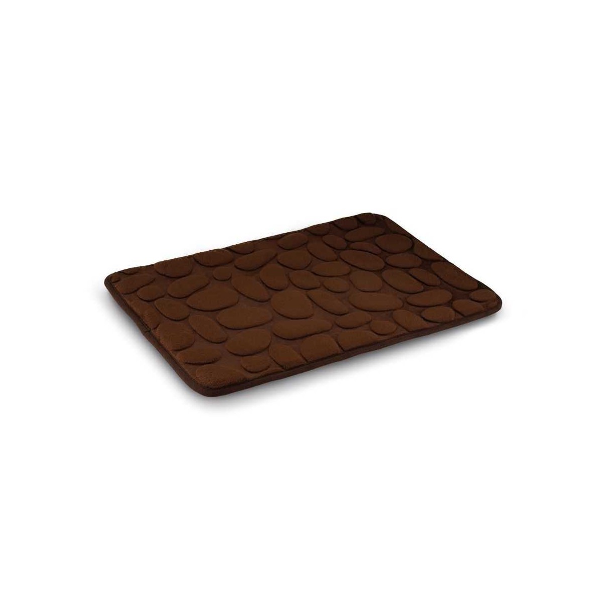 Kúpeľňový koberček v hnedom prevedení je vyrobený z mäkkého materiálu. Jeho povrch je štylizovaný ako kamenná cesta. Vďaka čomu pôsobí esteticky a moderne.