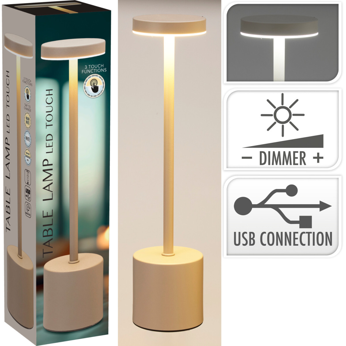 led dotyková stolová lampa 8x8x3,4cm