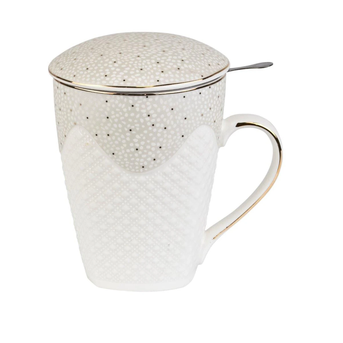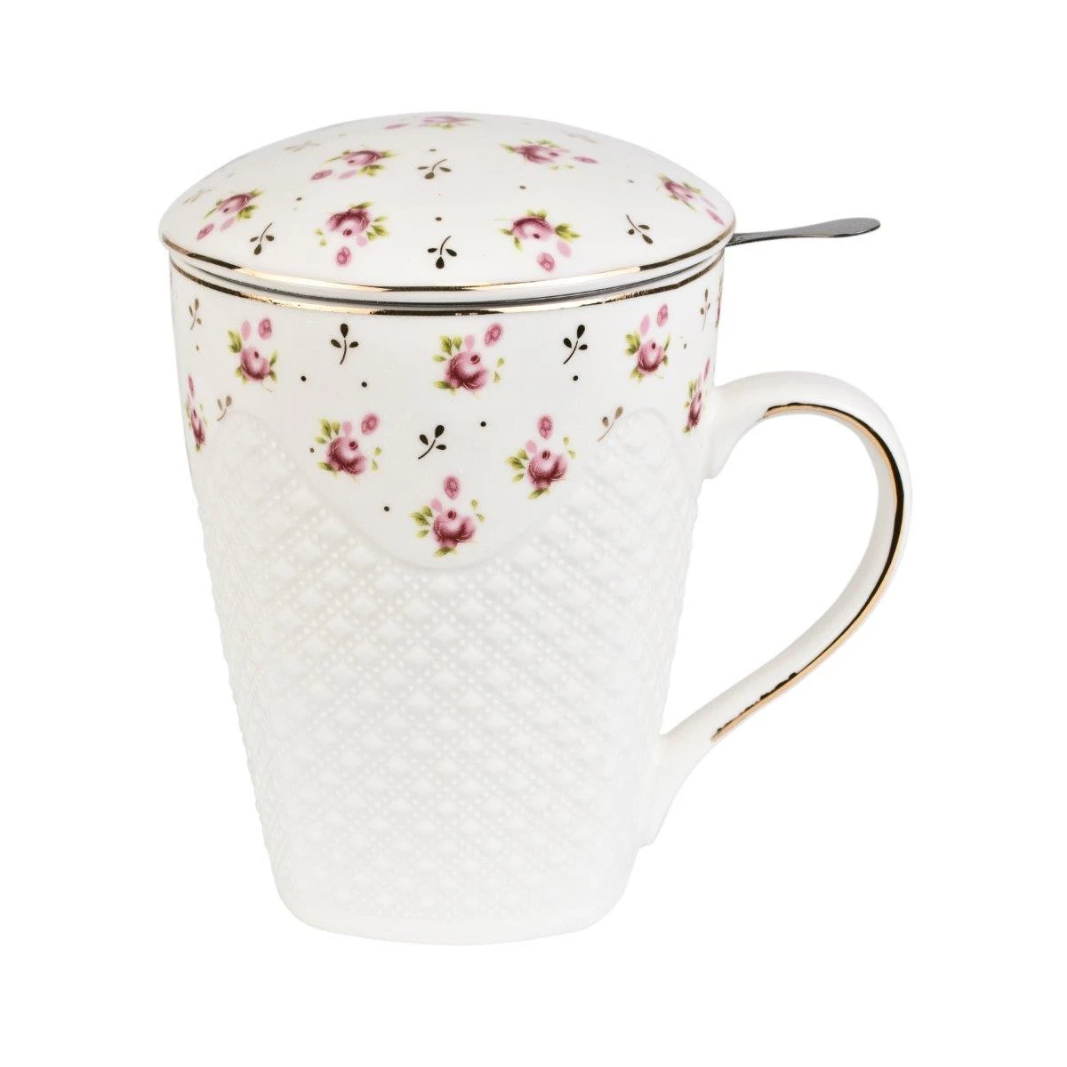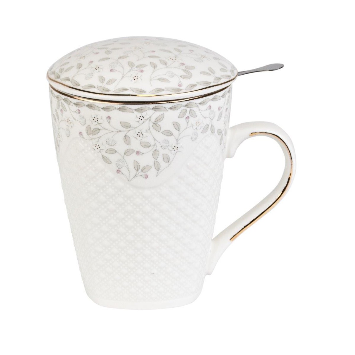 Kvalitný porcelánový hrnček s poklopom a nerezovým sitkom na vylúhovanie čaju. Objem 430ml.