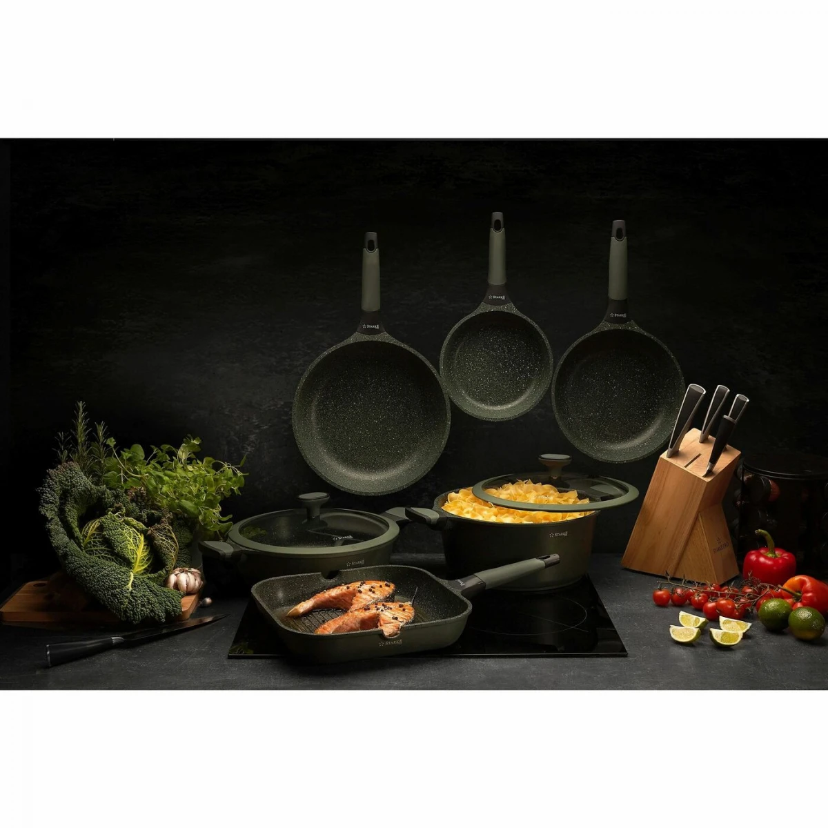 Odolný hliníkový odliatok : Panvica vyrobená z hliníkovej zliatiny zaisťuje rovnomerné rozloženie tepla pre konzistentné výsledky varenia. Ľahká konštrukcia tiež uľahčuje manipuláciu pri varení.