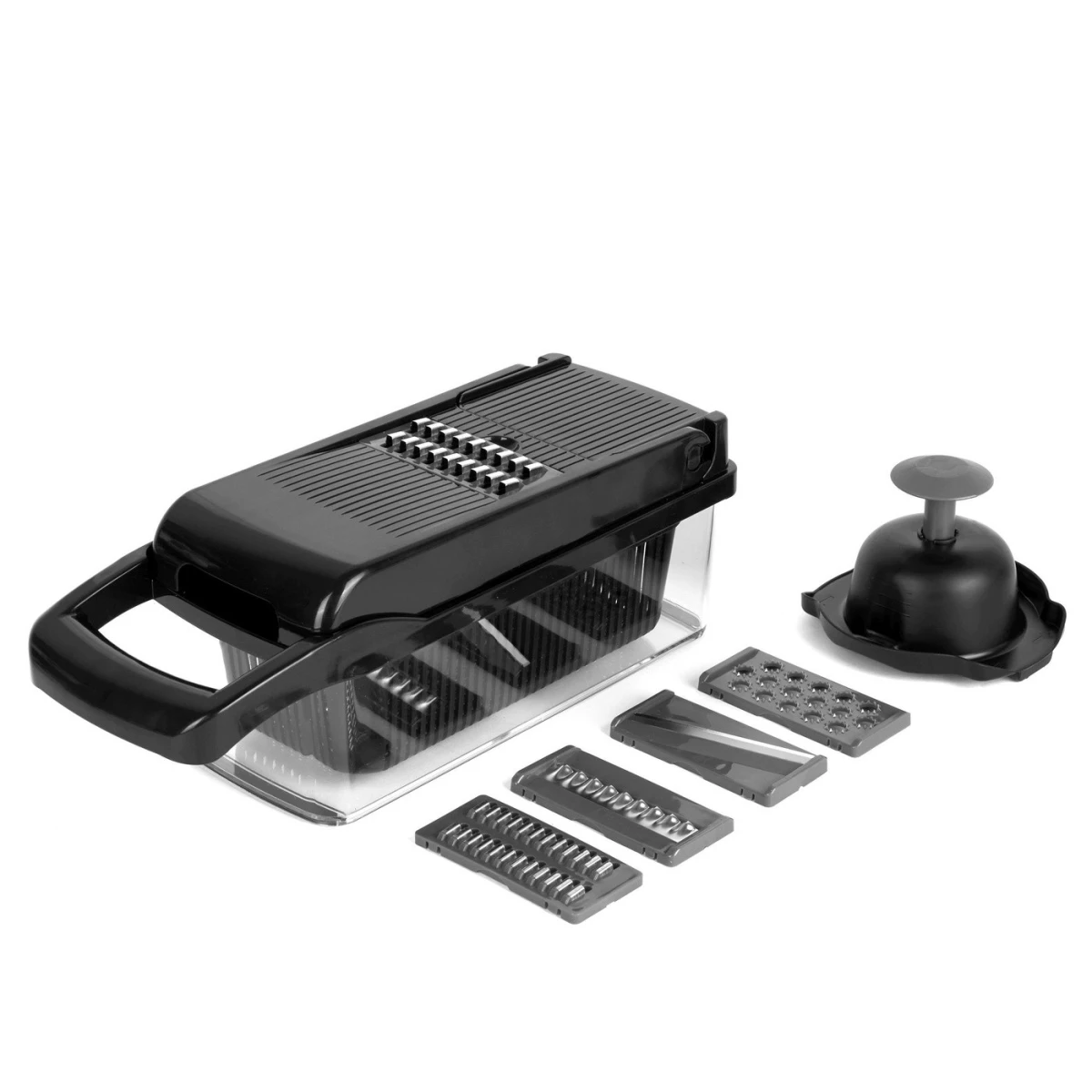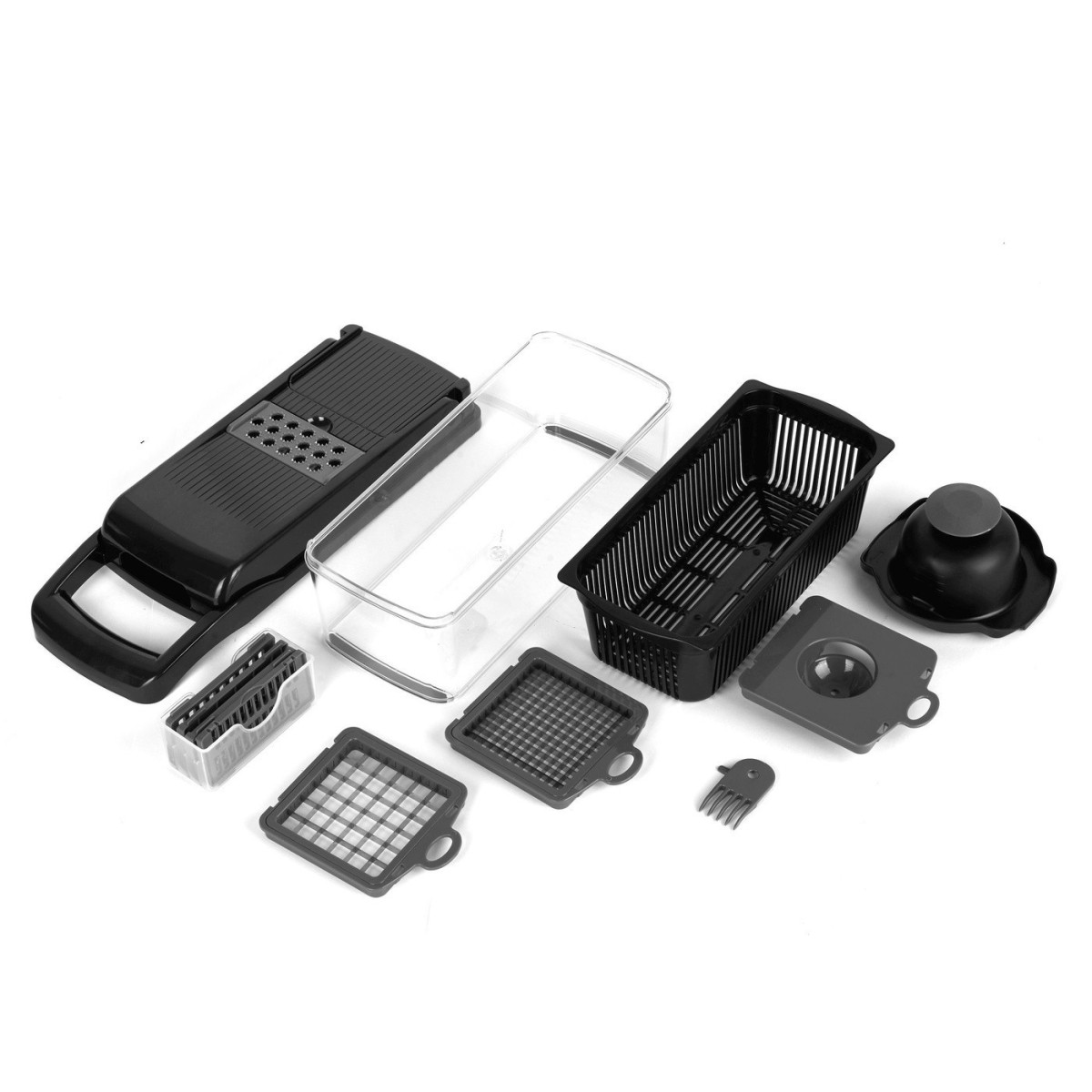 | Komponenty sady | - drvič - odkvapkávací kôš - rukoväť pre bezpečné uchytenie produktov - čistiaci hrebeň - nadstavec na veľké kocky (14 x 14 mm) - nadstavec na malé kocky (7 x 7 mm) - nadstavec na oddeľovanie žĺtkov od bielkov - nadstavec na strúhanie - nadstavec na strúhanie - 4 mm - nadstavec na prúžky - 3 mm - nadstavec na plátky - 2 mm - nadstavec s rebrovaným tvarom |