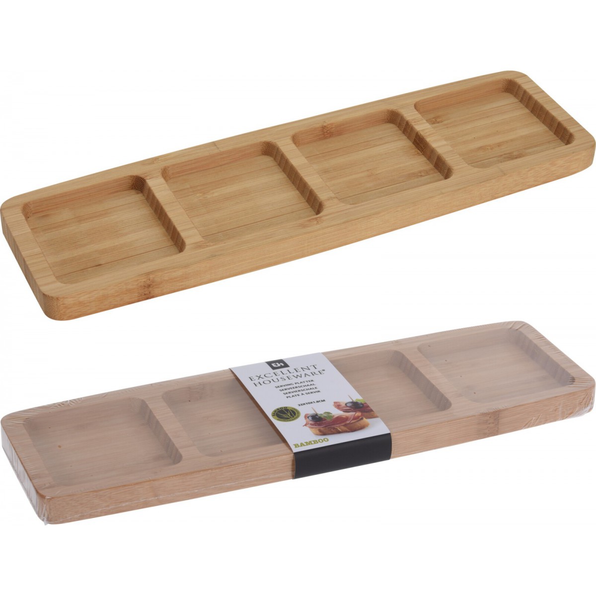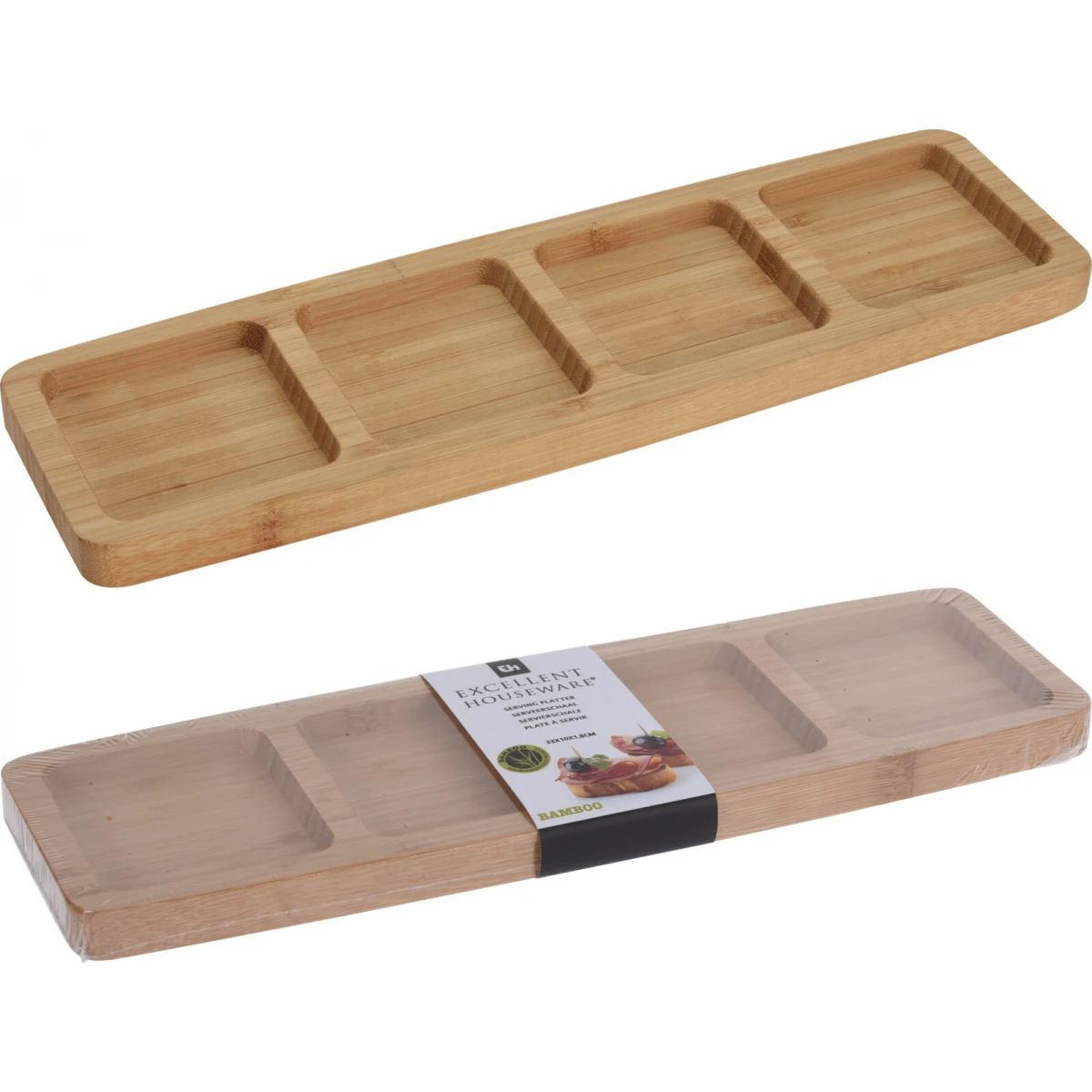 Bambusový podnos so 4 priehradkami je skvelý darček do kuchyne, ktorý poteší každého, kto má rád trendy doplnky z trvácnych materiálov, ktoré nikdy nevyjdú z módy. Vyrobený z bambusu. Podnos má 4 priehradky. Rozmery: 33 x 10 x 2cm. Umývať len ručne.